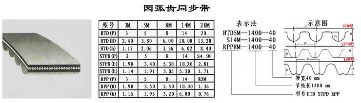 圓弧齒形帶節(jié)距和帶齒參數(shù)同步帶---型式---圓弧齒形帶